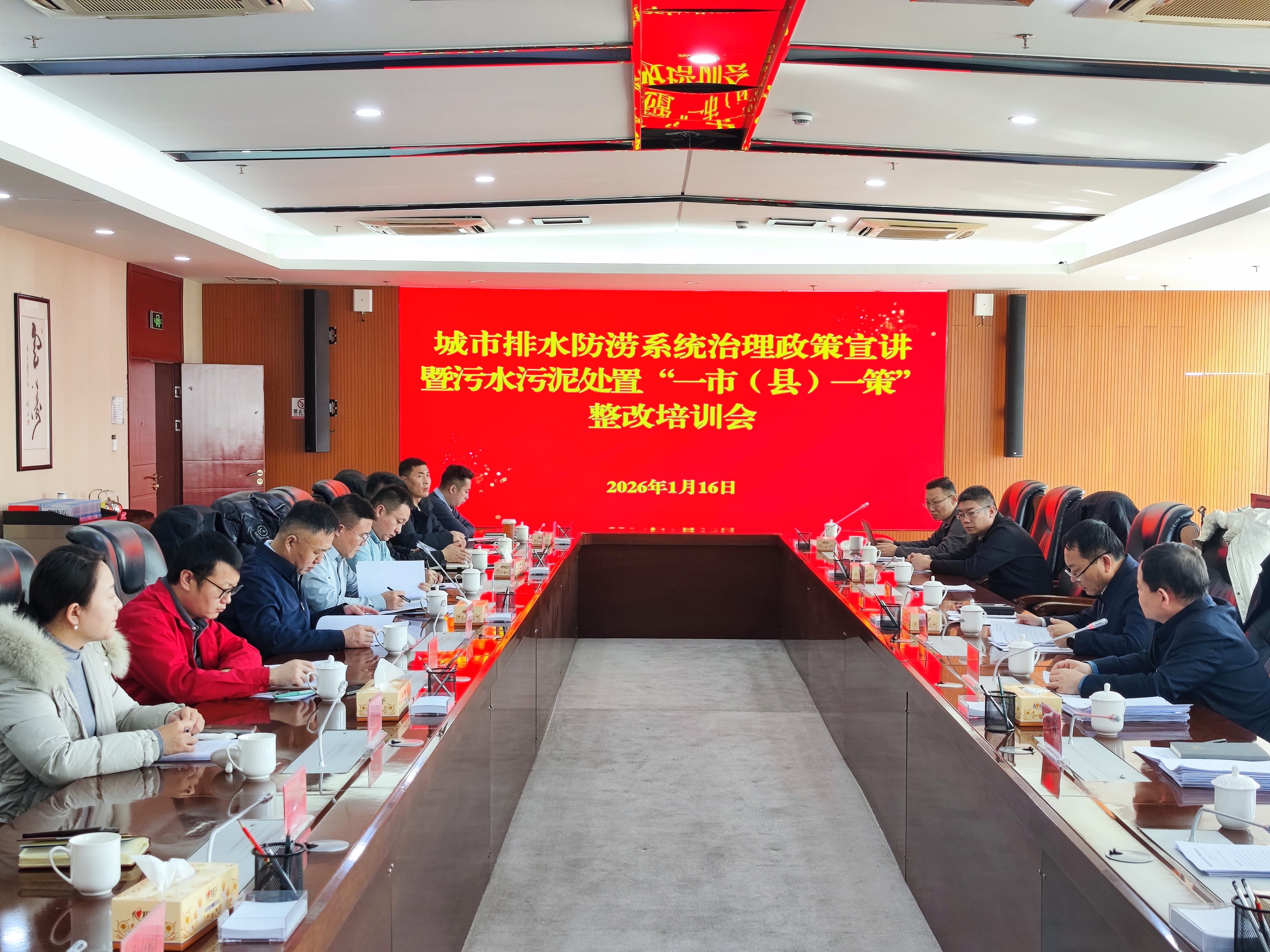 2026年1月13日至19日,自治区住房城乡建设厅赴五市开展城市排水防涝系统治理政策法规宣讲暨污水污泥处理处置“一市(县)一策”整改培训,自治区住房城乡建设厅党组成员、副厅长张钊参加活动并对下步重点工作进行安排,厅城市建设处主要负责同志、业务负责同志及第三方技术服务团队专家,各市、县(区)住房城乡建设局、城市管理局负责同志、业务骨干及污水处理、污泥处置、再生水利用等相关企业代表共140余人参加。
