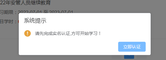 进入课程后,按课程顺序,点击“立即学习”,开始课程的学习,在开始学习后系统弹出确认框,要求学员进行人证比对,确保学员的学习状态。(PC端学习,电脑需具备拍照功能)