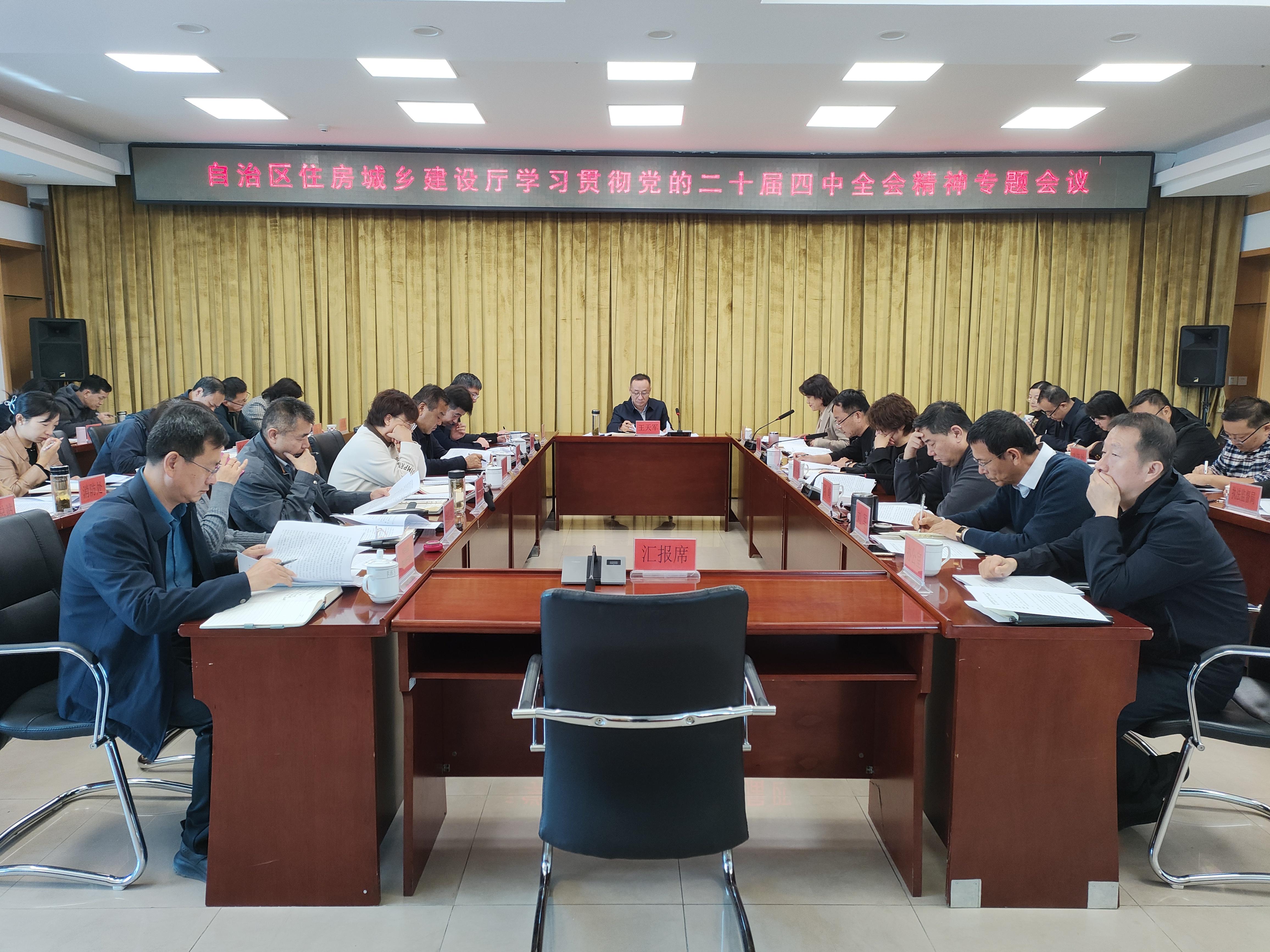 10月26日,自治区住房和城乡建设厅召开专题会议,传达学习党的二十届四中全会精神,研究部署厅系统学习宣传贯彻落实工作。会议由厅党组书记王天军同志主持,厅领导班子成员出席会议、厅机关处室和厅属单位主要负责人列席会议。