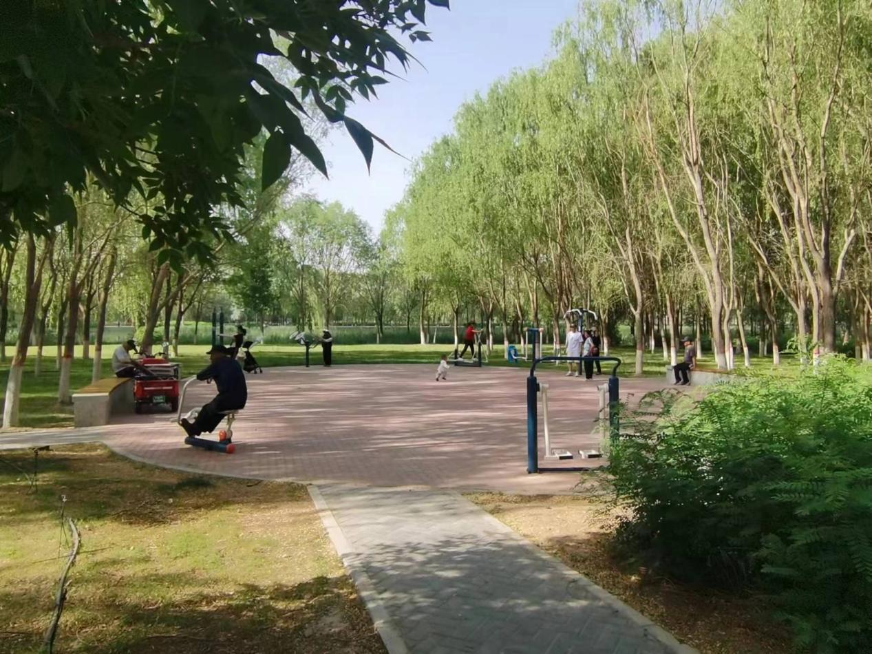 利通区阳光骄子社区配置设施将2处闲置空地改造为集健身、休闲于一体的口袋公园。