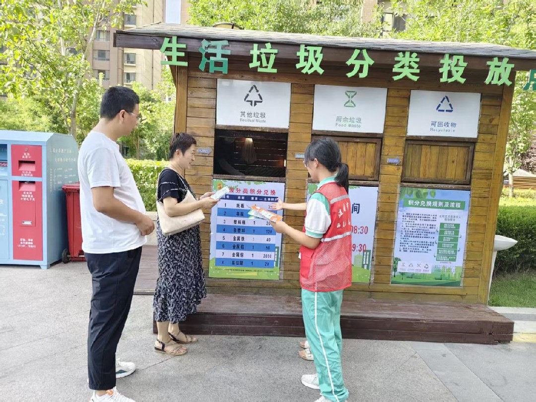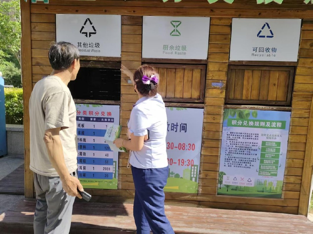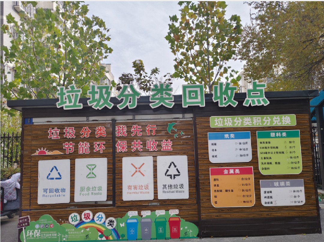 一是强基础优配置,实现设施建设 “全覆盖”。抢抓老旧小区改造契机,遵循 “一个小区一个方案” 原则,对 6 个改造小区实地勘察,联动业委会、物业服务企业、施工方精准选址,推进 “撤桶并点”。累计建成垃圾分类积分兑换超市 1 个、垃圾分类屋 3 个、垃圾分类亭 17 个,配备四分类垃圾桶 200 余组,设置宣传专栏 9 处,为 1600 余户示范家庭配备四色分类回收袋,筑牢分类硬件基础。