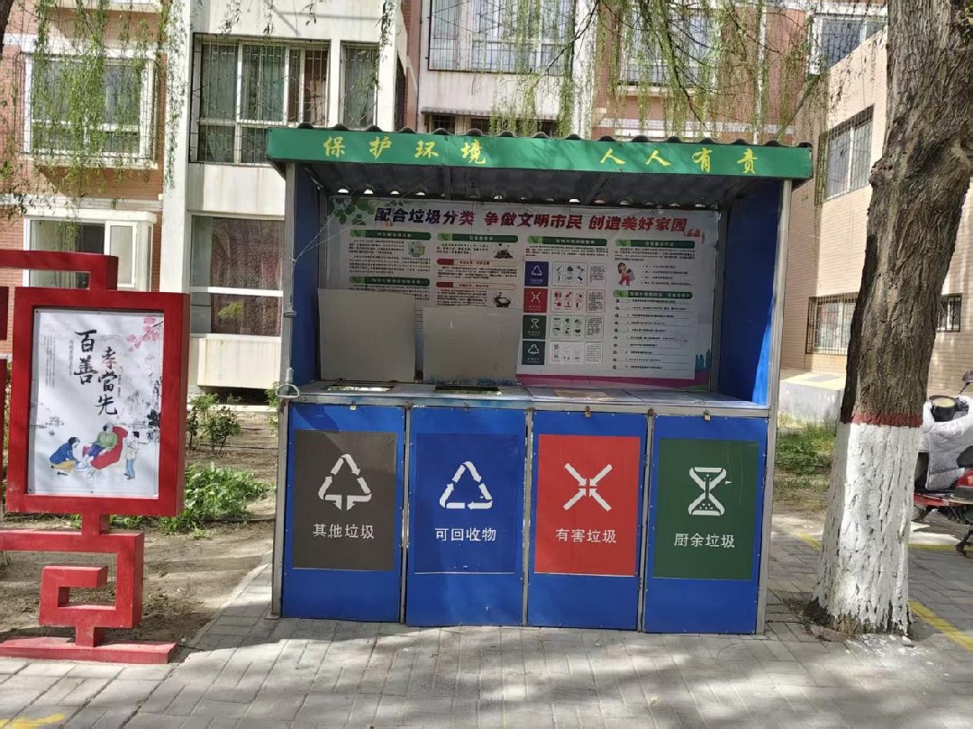 青铜峡市北苑社区强基础优配置,加强垃圾分类亭设施建设。