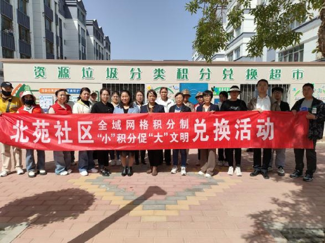 青铜峡市北苑社区定期开展积分兑换 —— 有害垃圾按上缴量免费兑换礼品,资源垃圾积分可兑换生活用品、物业费、停车泊位费等。