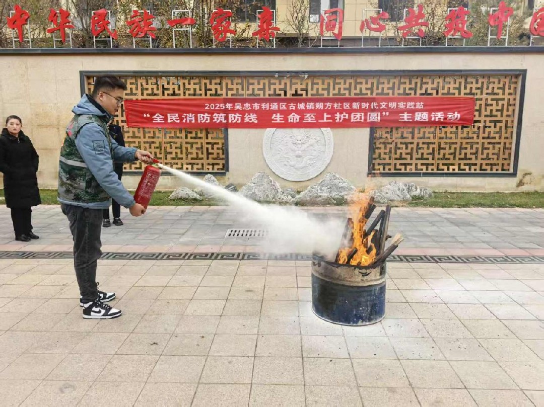 利通区朔方社区联合物业公司在金韵名邸小区开展“全民消防筑防线 生命纸上护团员”主题活动