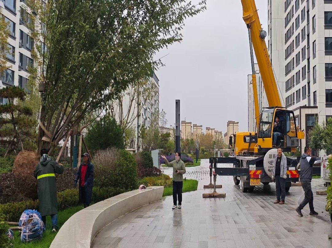 利通区朔方社区天宸湾小区开展绿化补种工作