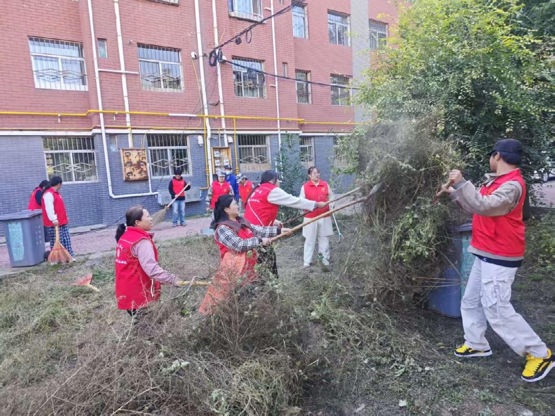 以创建“美丽家园”为目标,社区、物业与志愿者队伍形成合力,共同推进环境整治与绿化提升。(一)清洁卫生与垃圾管理。保洁团队实行“每日清扫、每周巡查、每月深度保洁”的工作模式,对楼梯、扶手、公共活动区进行常态化清洁,并针对卫生死角开展重点消杀。持续推进垃圾分类精细化管理,开展主题宣传活动3场,安排专人值守指导,居民垃圾分类参与率与准确率稳步提升。(二)绿化养护与美化。针对秋冬季绿化特点,物业公司安排专人负责绿植管护,联合志愿者开展杂草清理专项行动,清除8个小区绿化区域杂草、过密树枝修剪及草坪养护工作并清理落叶,对各小区内出现的枯萎绿植进行清除和更换,确保社区四季常绿、整洁美观。