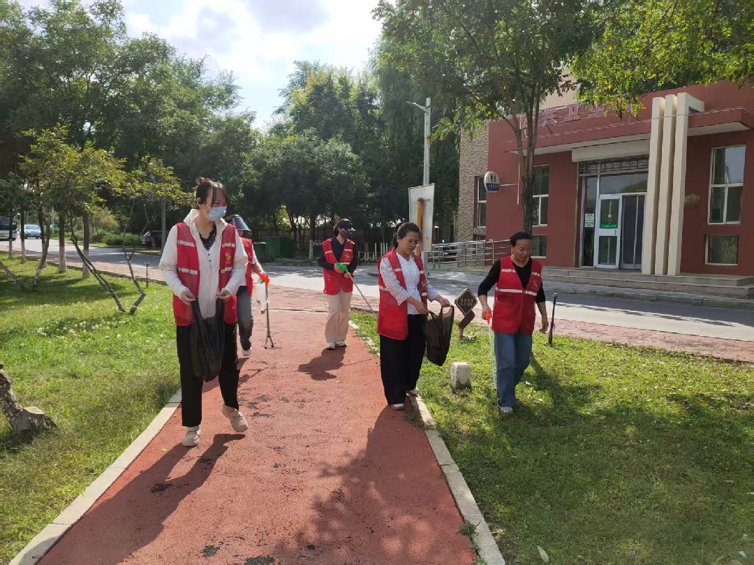 金凤区清水湾社区利用爱国卫生日活动、新时代文明实践志愿服务活动在典农河沿岸慢行步道开展环境卫生整治工作,为辖区地洁水清的优美环境提供有力支持。
